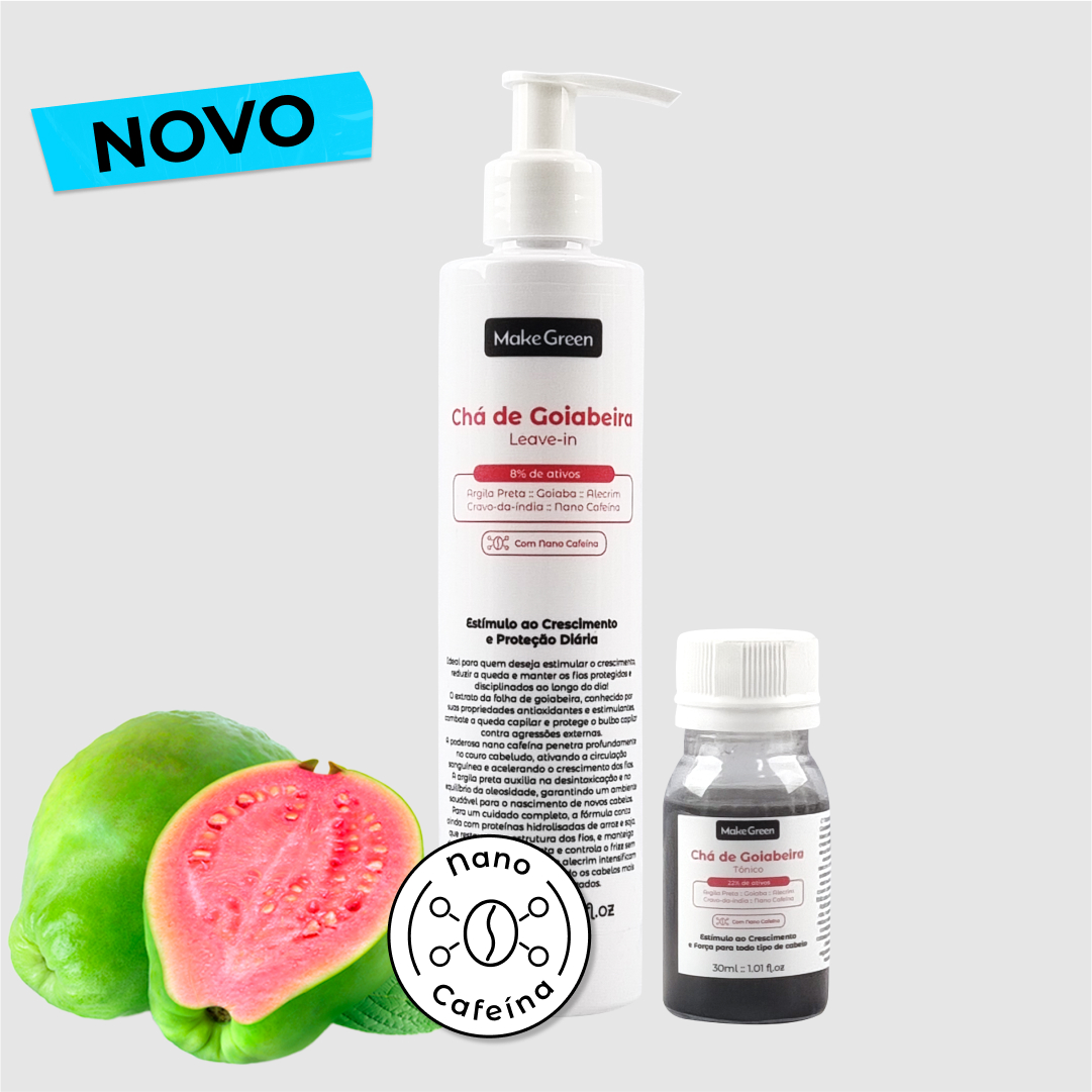Quando associada à nano cafeína, a folha da goiabeira potencializa seus efeitos, oferecendo um tratamento completo que reduz a queda, estimula o crescimento e deixa os cabelos mais resistentes, densos e brilhantes.